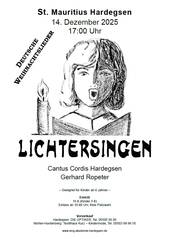 Im Lichtersingen vereinen sich singend Kleine und Große, Junge und Alte, ebenso Menschen, die oft singen und solche, die selten oder nie singen. Alle, die singen wollen, werden in großer Gemeinschaft singen können, unterstützt und getragen vom Wohlklang des Cantus Cordis.
