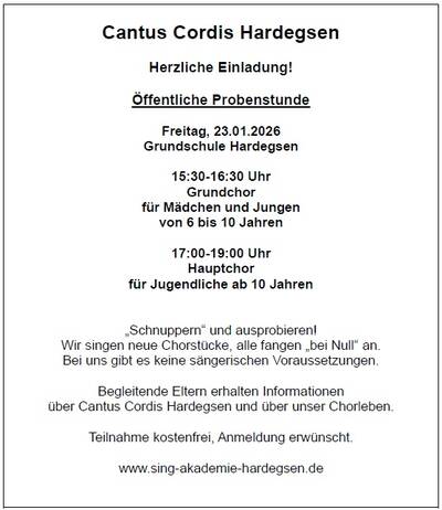 Die Chorproben finden freitags in der Grundschule Hardegsen statt.